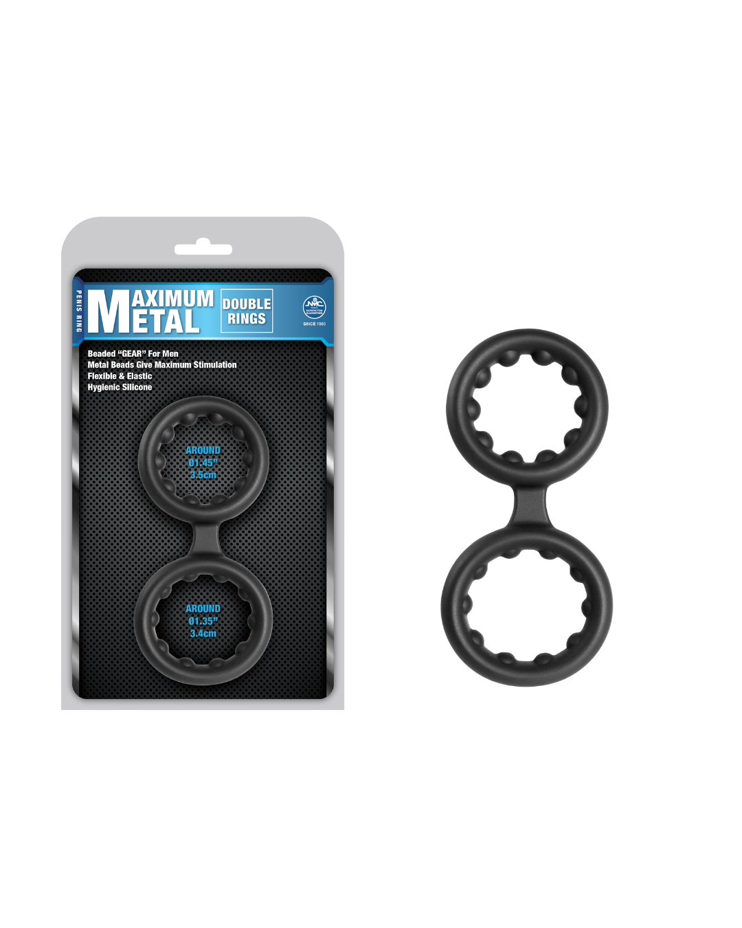 The Maximum Metal 2 in 1 Silicone Cock Ring in black offers a versatile solution for enhancing intimate experiences through targeted stimulation and support. Crafted from body-safe silicone, this dual-purpose accessory combines flexibility with durability, ensuring a comfortable yet firm fit that adapts to various sizes. Its design includes two interconnected rings—one for securing at the base and another for perineal stimulation—providing enhanced erection stability and increased sensitivity.