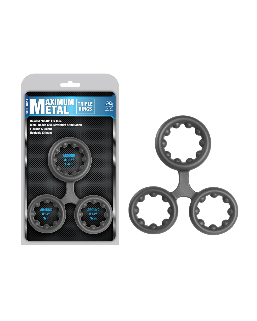 The Maximum Metal 3 in 1 Cock Ring in grey is designed to enhance performance and provide versatile benefits in one compact device. Crafted from durable, body-safe silicone with a sleek metallic finish, this ring combines elasticity and firmness to offer a comfortable yet secure fit for a broad range of sizes.